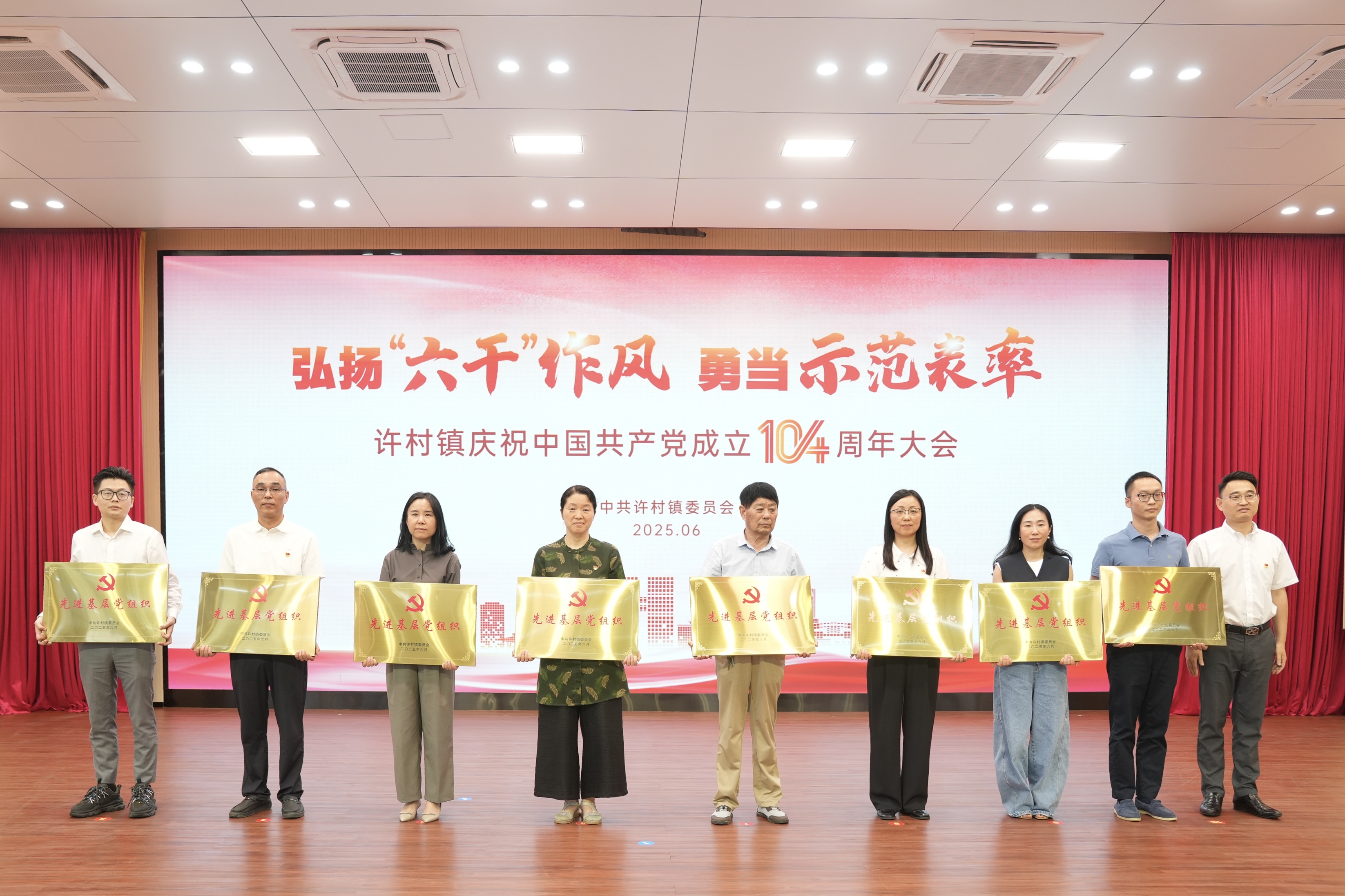 6月27日下午,许村镇举行“弘扬‘六干’作风 勇当示范表率”庆祝中国共产党成立104周年大会,宏达控股集团党委在会上获评许村镇“先进基层党组织”荣誉称号