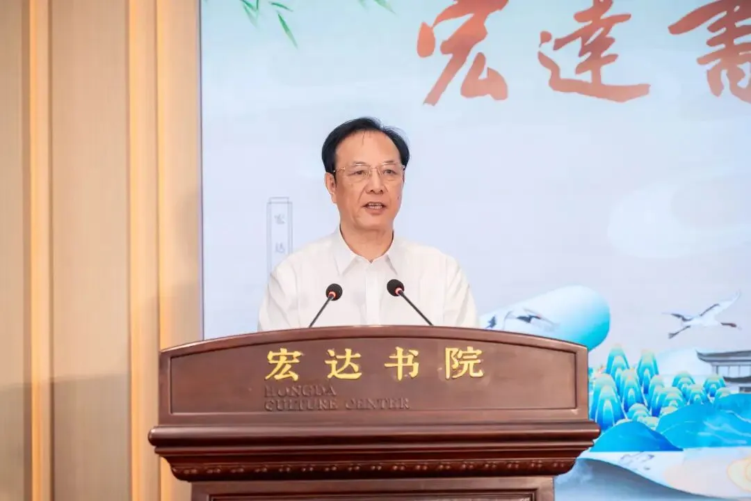 启动仪式现场氛围庄重而热烈,沈国甫董事长与有关领导、嘉宾共同见证这一重要时刻。仪式上,沈国甫董事长代表书院全体同仁向出席仪式的各位嘉宾表示热烈欢迎,并表达了书院建立的初衷。他强调,“宏达”自1985年创立,四十年来的每一步成长都离不开家乡滋养与社会支持,始终牢记“富了口袋,还要富脑袋”的初心。此次在创立四十周年之际建成“宏达书院”,并非单纯建设建筑或公共设施,而是致力于搭建“薪传斯文、固本浚源”的文化空间,以实际行动反哺家乡,为提升城市人文品质、丰富公共文化服务贡献企业力量,践行以文化反哺家乡的社会责任。