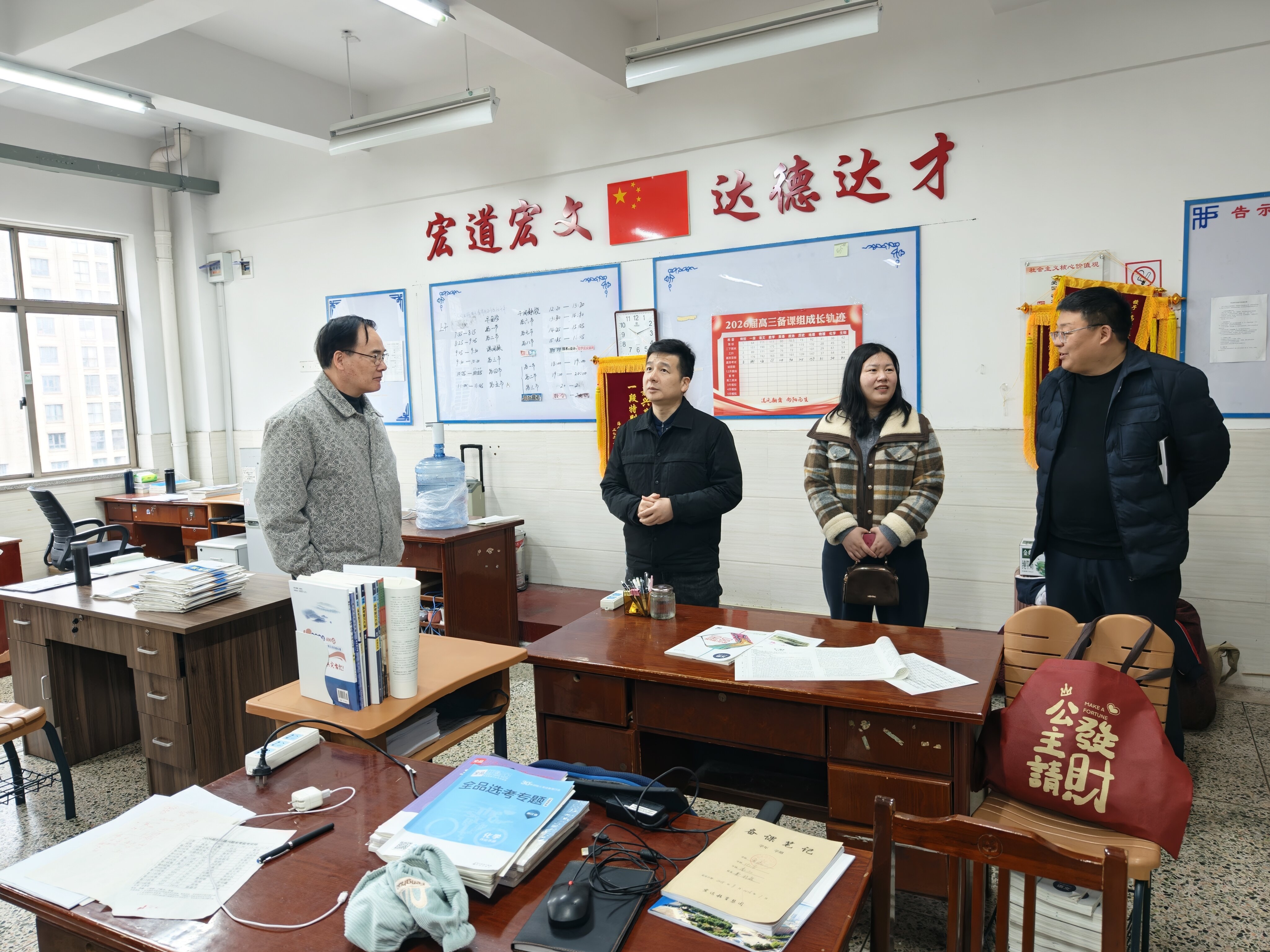 在学校高三教师办公室,夏云熙总督学一行慰问了奋战在备考一线的高三教师,详细询问教学与生活情况,对全体高三教师的坚守付出表示感谢,并勉励大家凝心聚力、科学备考,助力学子圆梦高考。