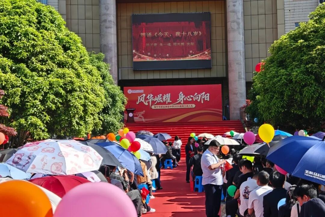 4月19日下午,海宁市宏达高级中学2026届高三成人礼隆重举行,全体高三学子在家长、校领导及高三教师的共同见证下,以“五崛华章”为序,完成了一场庄严而又温情的成人仪式。