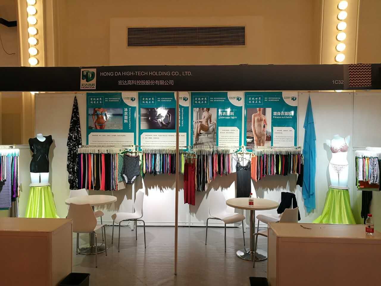 展会共持续三天,整体参展效果良好。公司分别展出的多款功能性面料,具有高弹性、高回复性、吸湿排汗、抗菌、抗起毛起球等功能。公司在两个展会上皆有展位,共计30平方米,日均客流量约400人,其中50%为国外客户,主要来自美国、英国、日本等地。他们对公司的功能性面料、运动服饰面料、内衣面料都非常感兴趣,其中不少客户还是著名的国际贸易商和品牌运动服生产厂家。