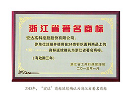 2013年,“宏达”商标延续确认为浙江省著名商标...