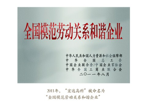 2011年,“宏达高科”被命名为“全国模范劳动关系和谐企业”...