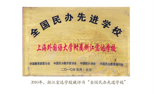 2010年,浙江宏达学校被评为“全国民办先进学校”...