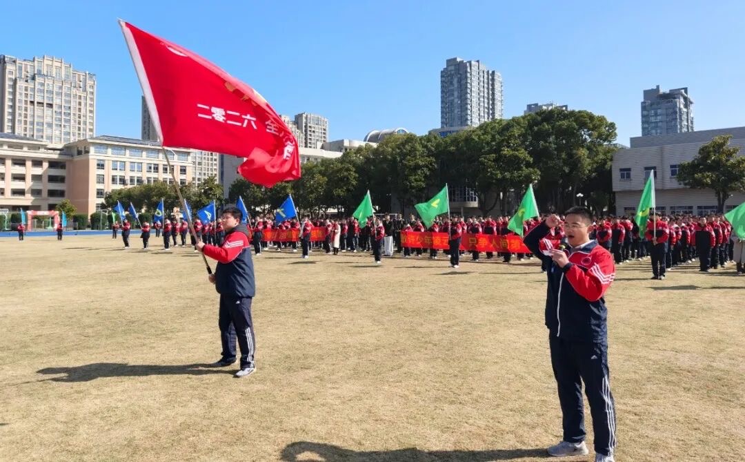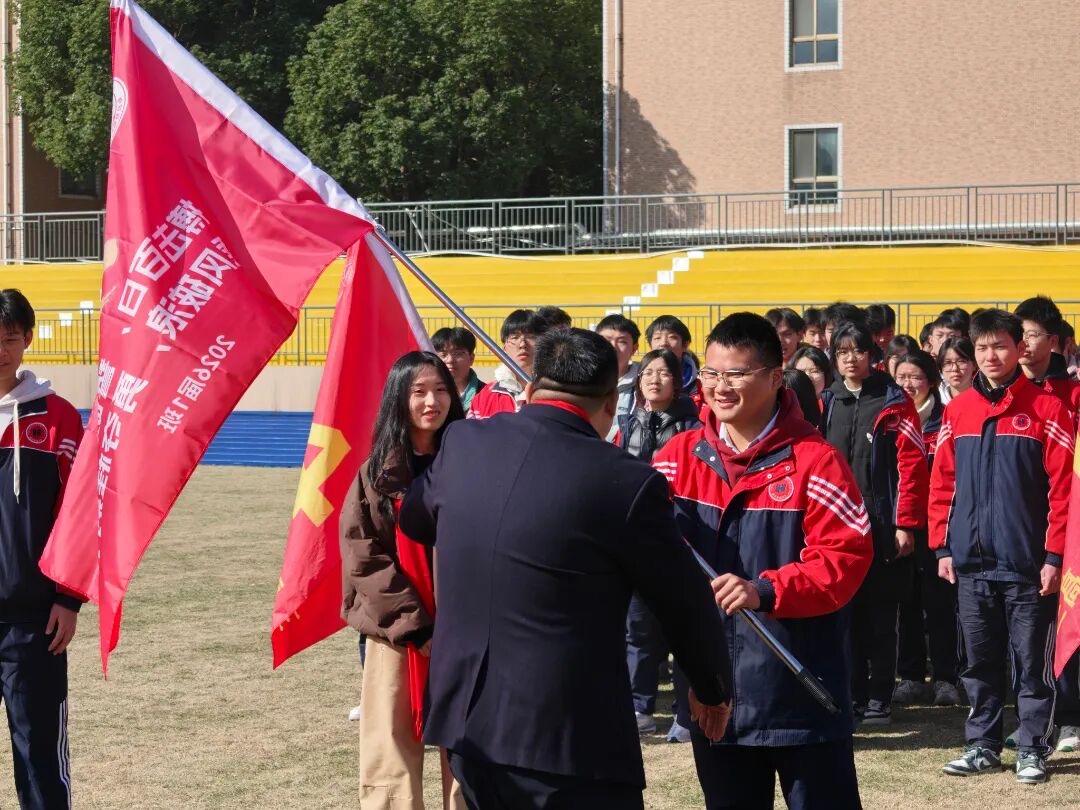 授旗环节,校领导为各班授予专属战旗,旗手奋力挥舞,全体高三学子高举战旗、齐声呐喊,口号震天;各班依次开展班级誓师,班主任暖心寄语,学子们喊出铿锵誓言,展现出了团结一心、奋勇争先的精神风貌。