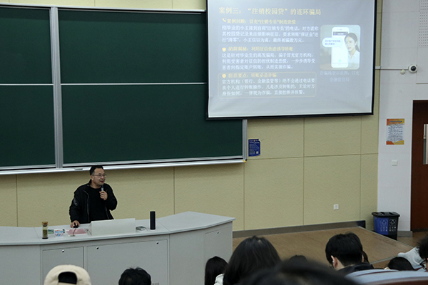 讲座特邀嘉兴市教育局驻校警驿站教育专员沈其豪主讲。讲座紧扣总体国家安全观,结合高校校园安全实际与青年学生特点,系统讲解国家安全核心内涵、当前国内外安全形势,以及大学生与国家安全的紧密关联,并围绕网络谣言辨别、个人信息保护、抵制邪教与境外势力渗透等校园重点安全问题。讲座中,他针对校园常见安全隐患进行专业解读,详细讲解各类安全风险防范与处置方法,同时通过模拟场景、互动问答等形式,聚焦陌生人员登记、敏感信息保密、网络诈骗防范等实操内容,引导学生主动排查安全隐患,强化安全防范能力。现场互动氛围热烈,学生们认真学习、积极交流。