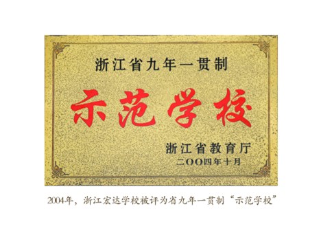 2004年,浙江宏达学校被评为省九年一贯制“示范学校”