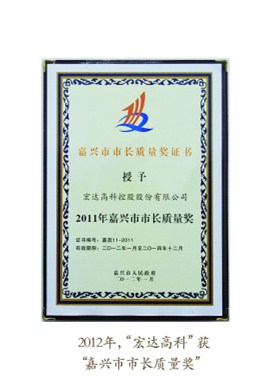 2012年,“宏达高科”获“嘉兴市市长质量奖”